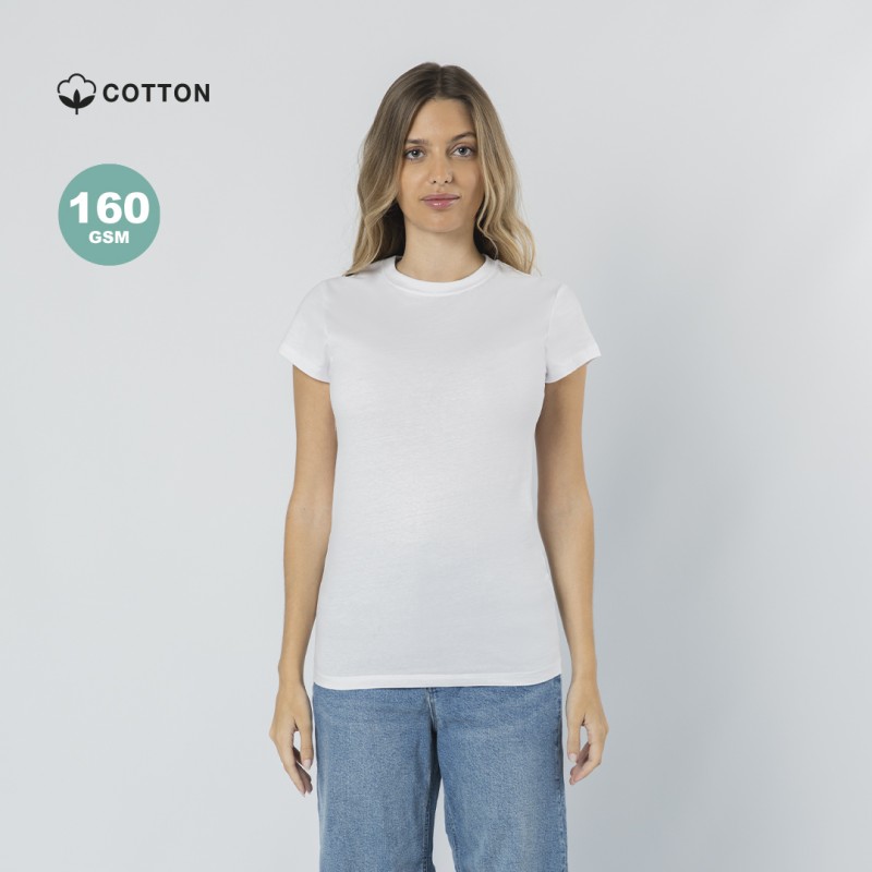 Camiseta de mujer confeccionada en punto liso con suave 100% algodón de 160g/m2. Cuello redondo.