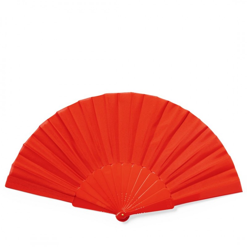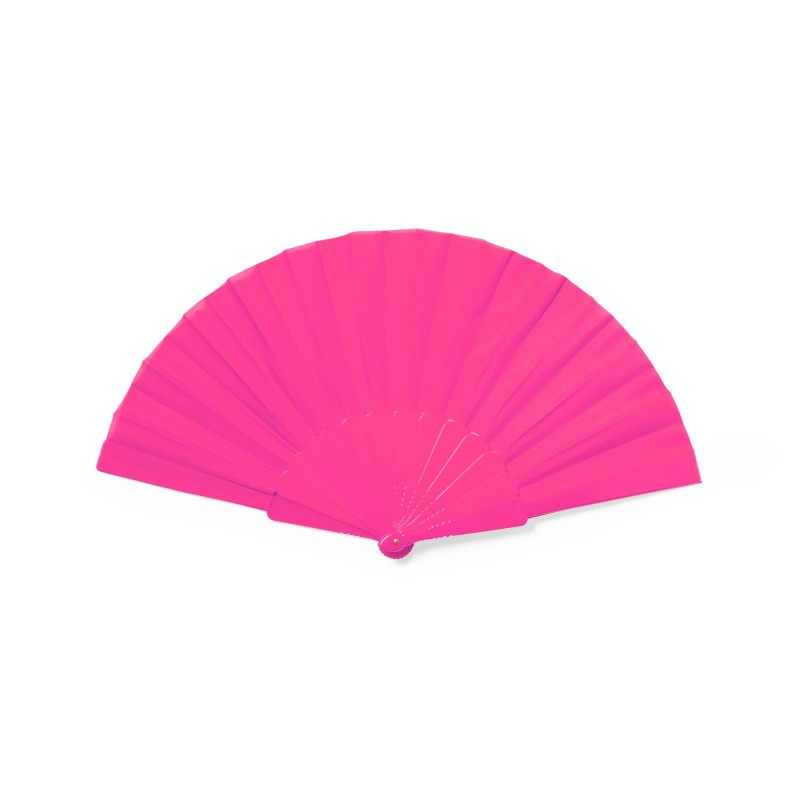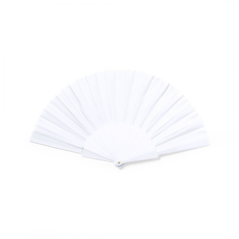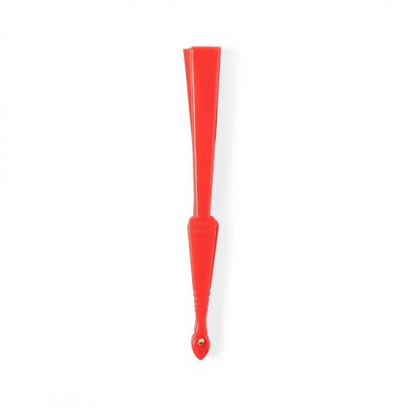 Abanico de línea nature con tela en resistente poliéster 210T RPET. Varillas a juego también en RPET, con distintivo inyectado en molde.